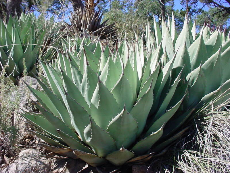 Genus Agave can be perennial or monocarpic succulents, forming rosettes of usually rigid, fleshy, spiny-edged leaves, with funnel-shaped flowers in racemes or panicles often much taller than the rosettes